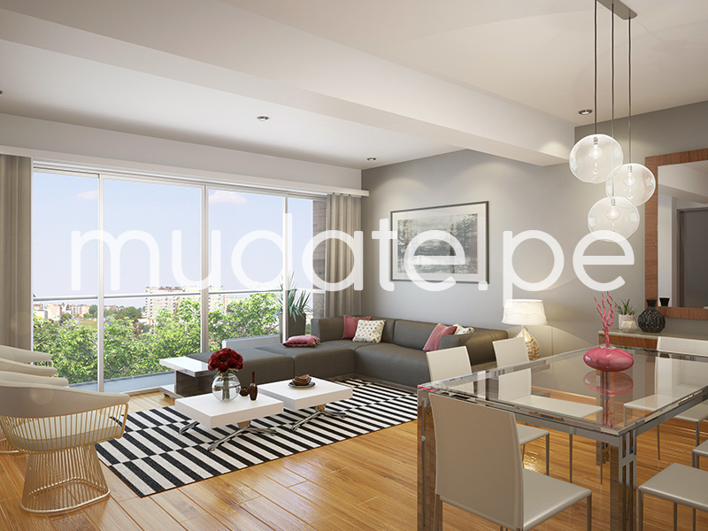 Piso de bamboo premium en sala, comedor y dormitorios.